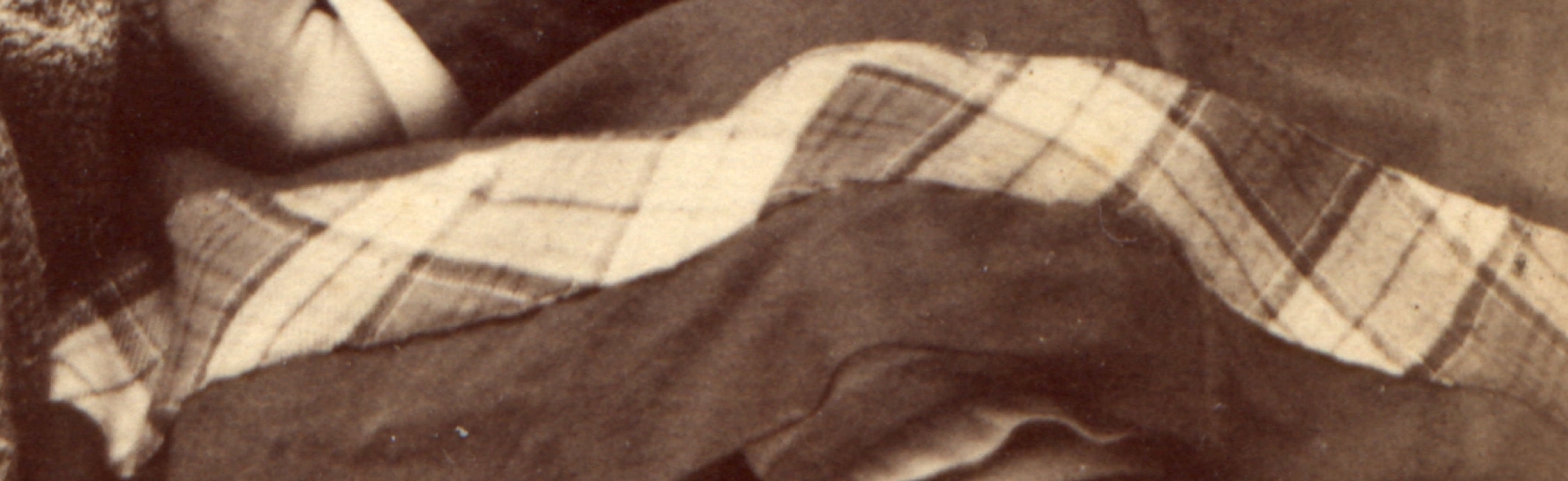 Here is an 1876 photo of Jesse Belle Healy wearing a Tartan.